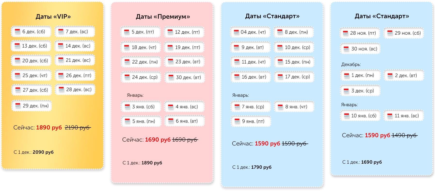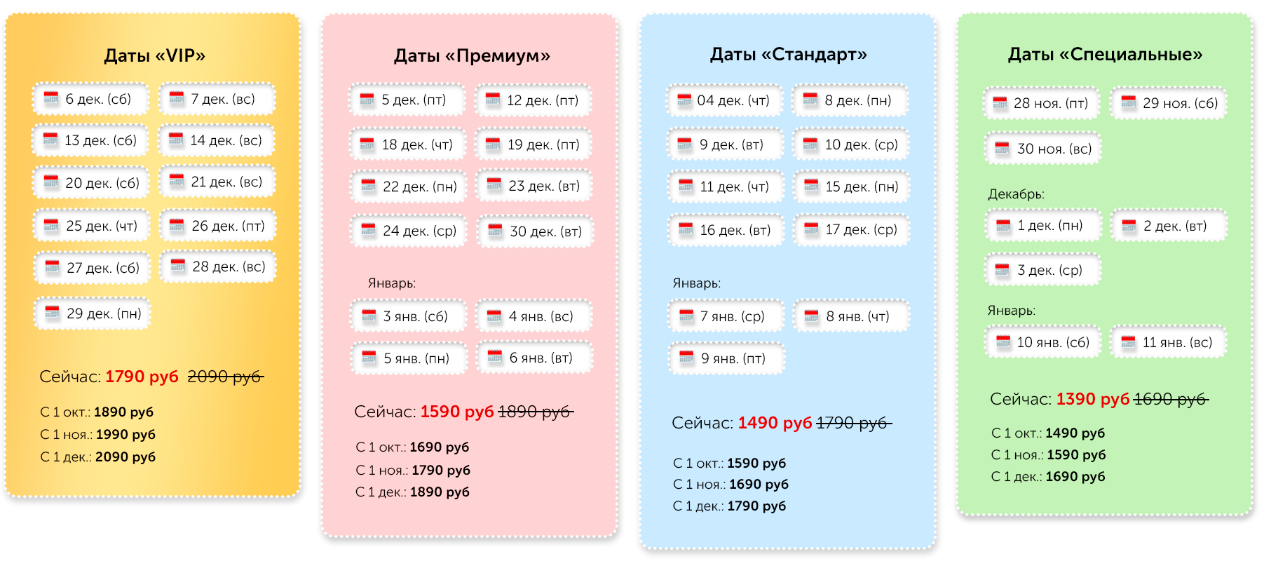Оставьте свой номер телефона - мы перезвоним вам в течении 1 часа (в рабочее время) и предложим наиболее подходящие для вас даты и цены, скинем программу в Вотсап, а также закрепим за вашим номером телефона 1 взрослый билет в подарок (при условии группового бронирования в дальнейшем)