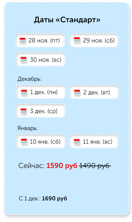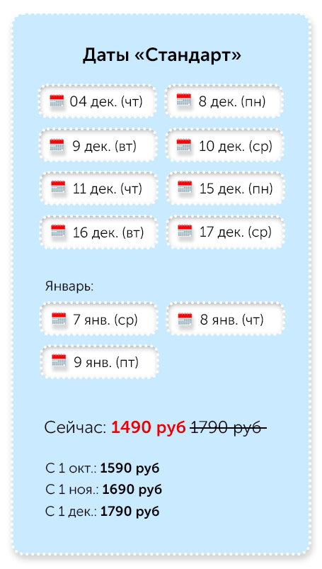 Вы вносите предоплату за группу всего 5000 руб, чтобы закрепить за собой дату
