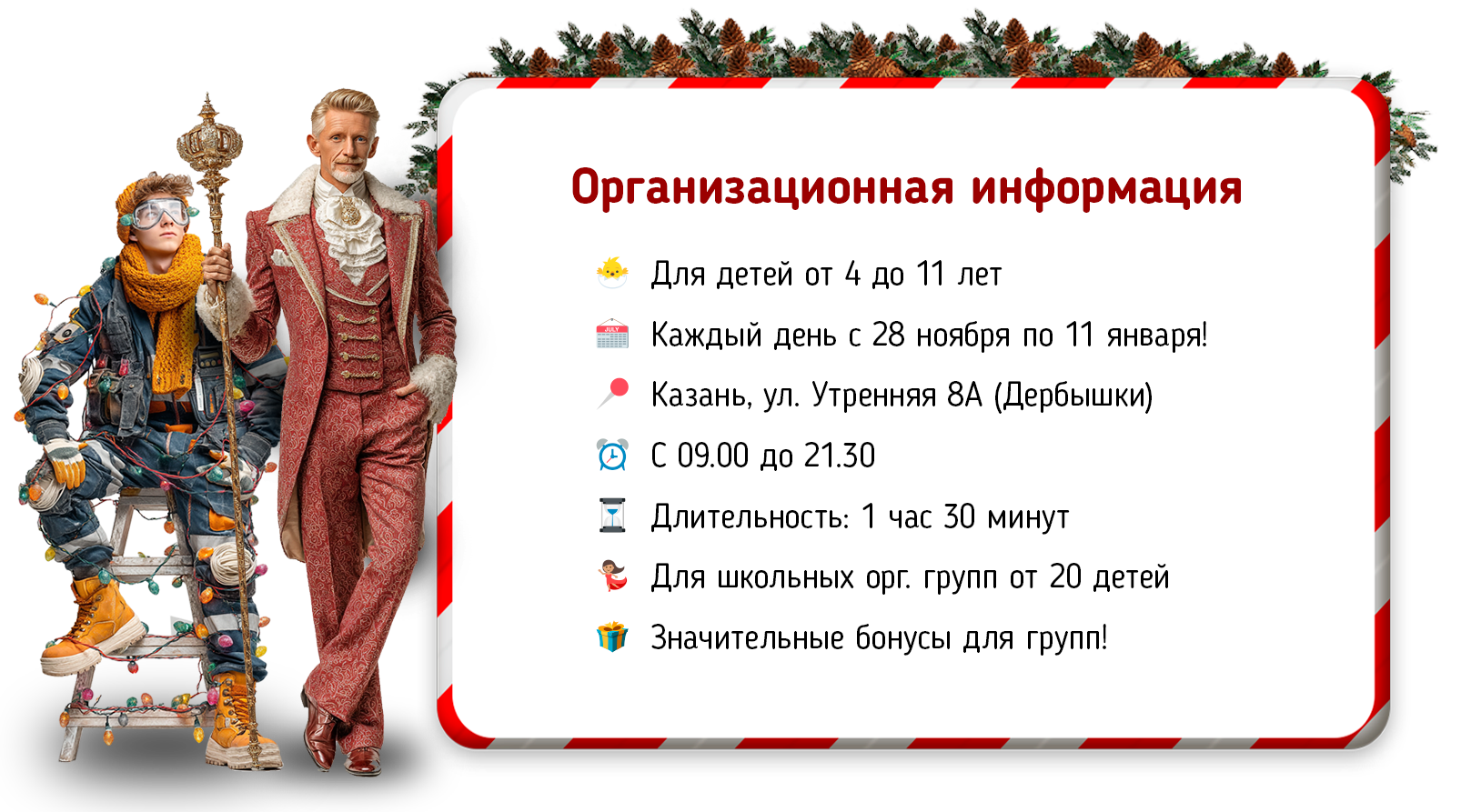 Деток ждет путешествие в настоящий деревянный дом с волшебной атмосферой, новогодним интерьером. Это не просто экскурсия, это целое приключение! Таких локаций в Казани больше нет!